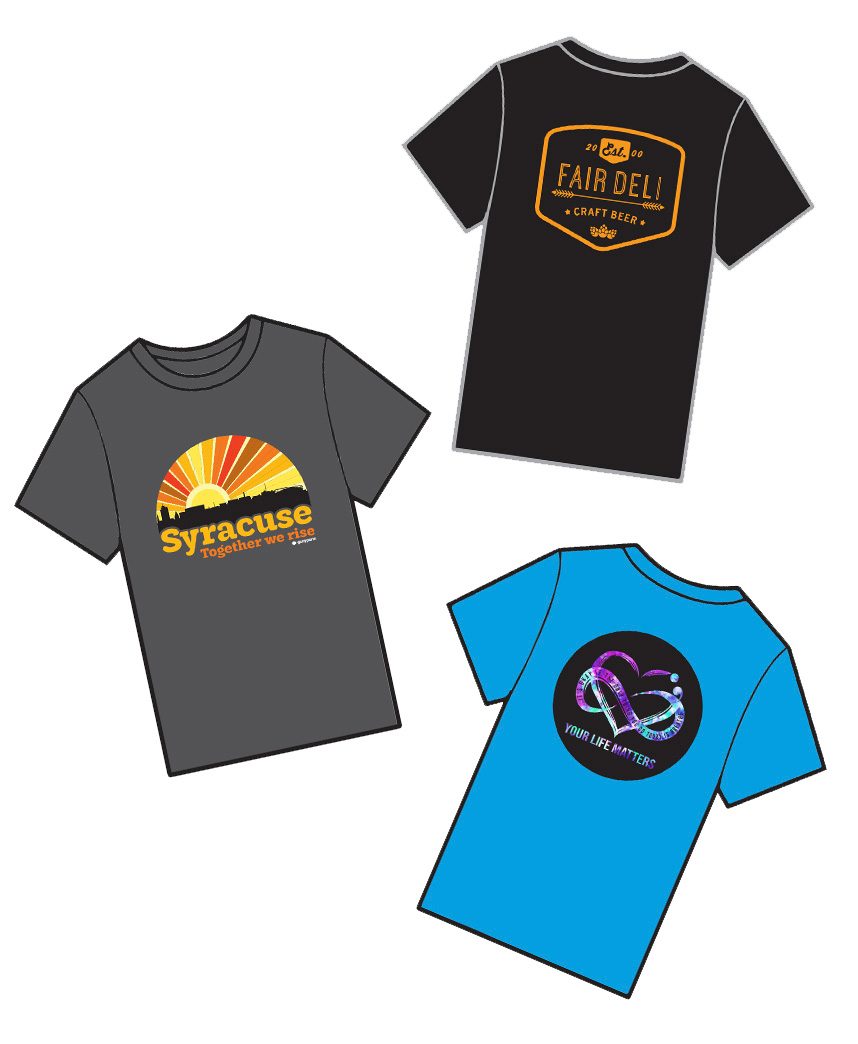 We can create custom apparel, stickers, decals, drinkware, bags, hats, notebooks and more.