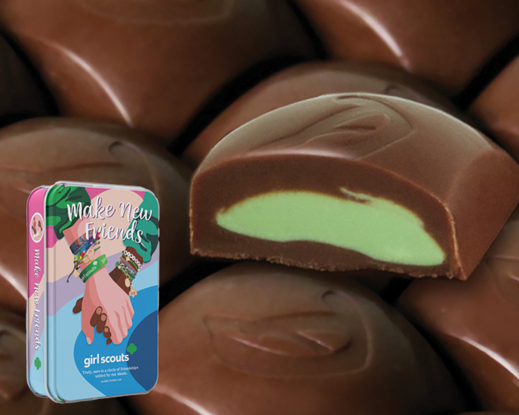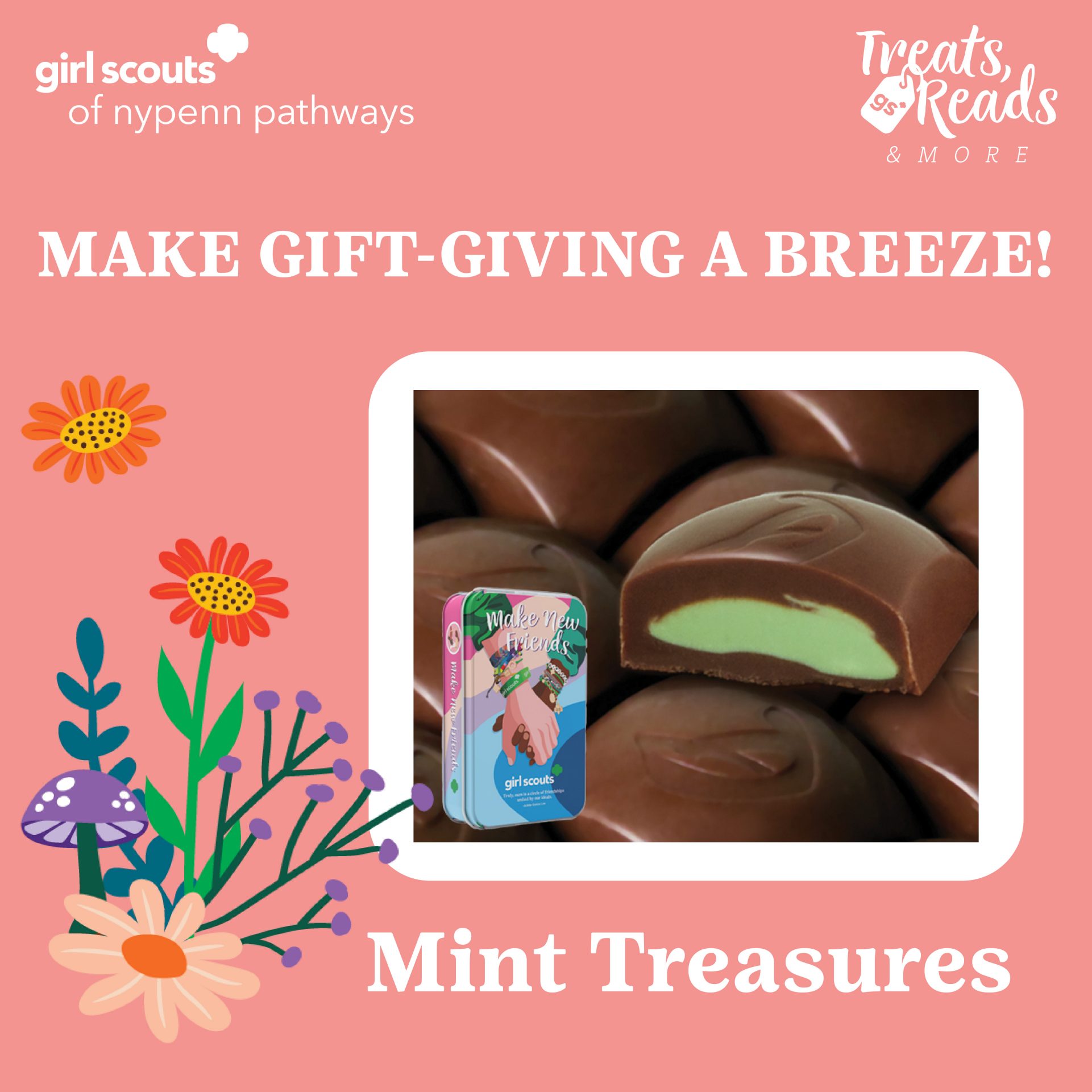 Check out Mint Treasures–a creamy milk chocolate candy with a refreshing center–which comes in this year’s “Make New Friends” Girl Scout series tin. 🌿🍫
