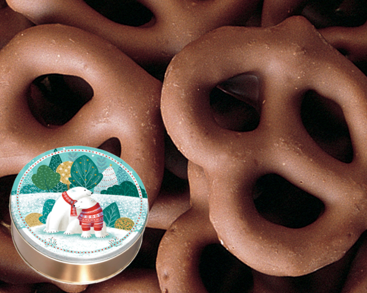 Or why not try the sweet AND salty Chocolate Covered Pretzels which wrapped up inside this season’s holiday series tin featuring a polar bear design. 🐻❄️