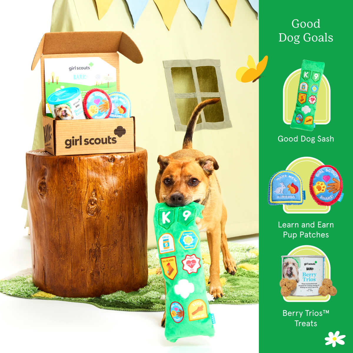 These Girl Scout-themed mini BarkBox® bundles come with treats, toys and even “pup patches” and “sashes” for your furry friends.