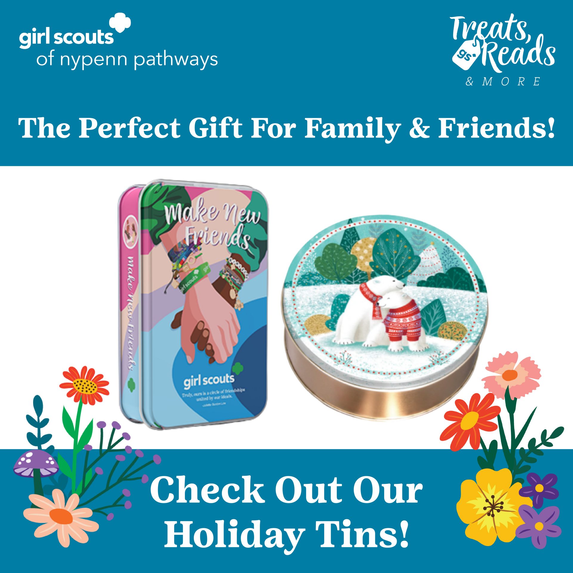 Our 2025 Girl Scout- and holiday-themed tins are filled with delicious treats that make gift-giving a breeze! 🤗