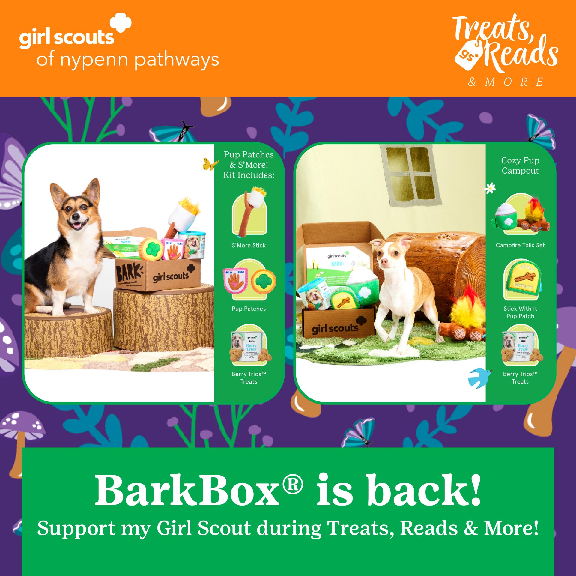 Support my Girl Scout [name] during Treats, Reads & More by purchasing these PAWS-itively adorable items. 🐾