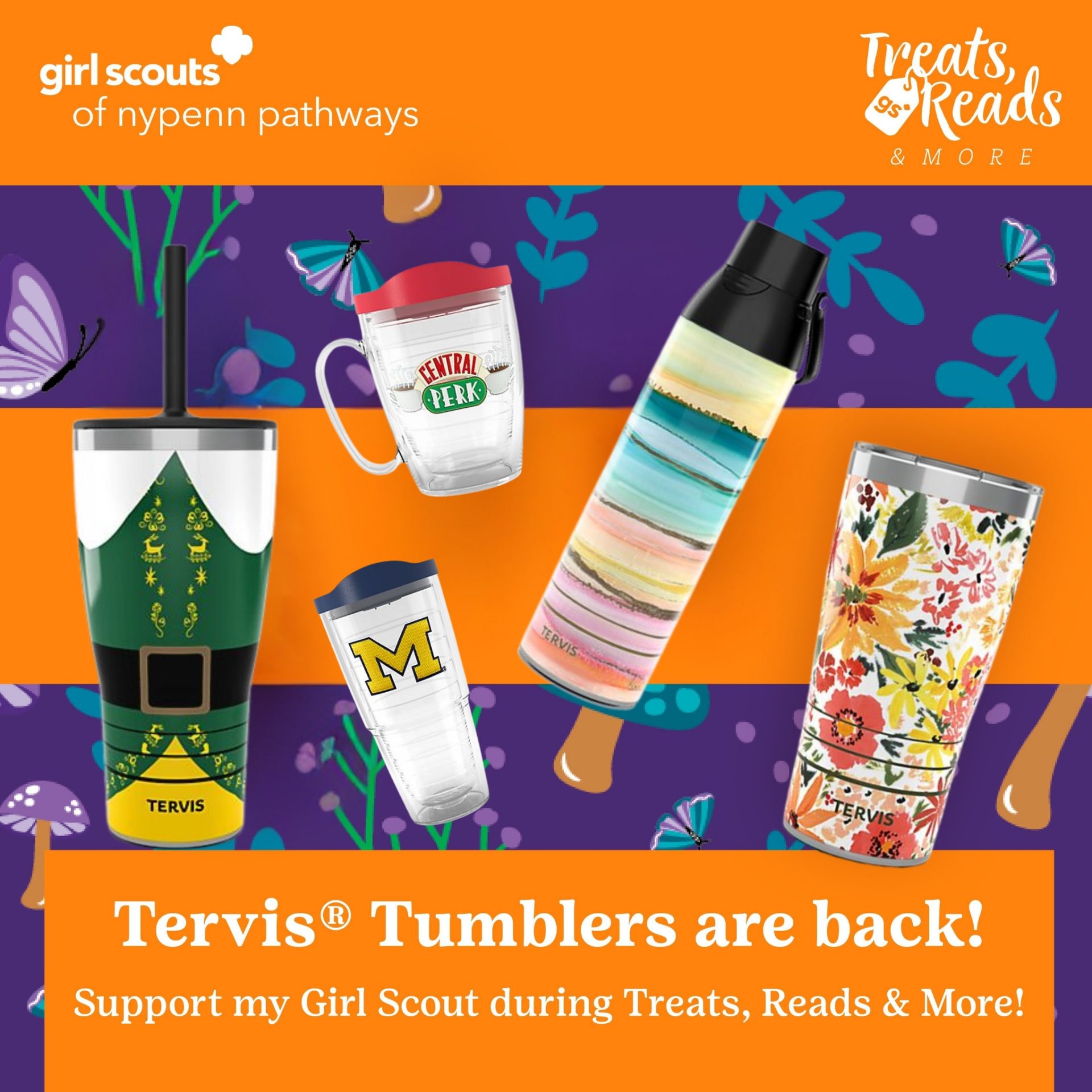 Show off your team pride, fun side or even love for “Buddy the Elf” when you purchase Tervis® drinkware from my Girl Scout [name] during the annual Treats, Reads & More Program. 🥤